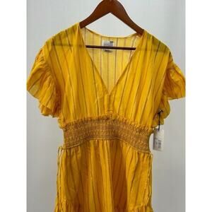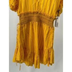 Saylor Adrienne Mini Dress Ruffle Short Sleeves Yarn Dye Stripe Yellow S NWT