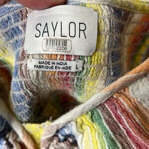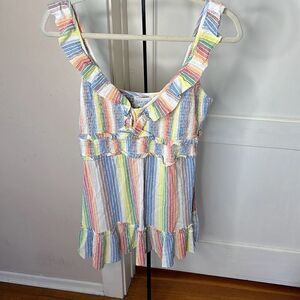 Saylor Alma Rainbow Smocked Striped Ruffled V-neck Size Large