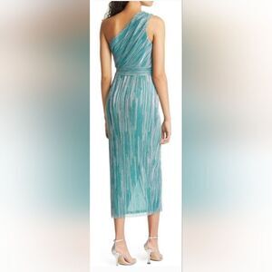 Saylor Alorna One-Shoulder Metallic Green Midi Dress NWOT size Large