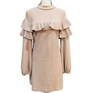 Saylor Balloon Sleeve Ruffle Mock Neck Queenie Sweater Dress Size Medium