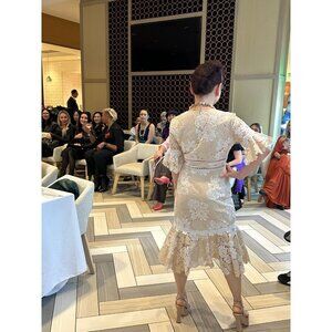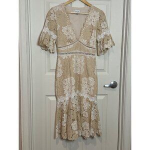 Saylor Beige/White Floral Mermaid Lacy Dress Size Small