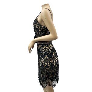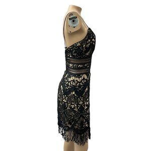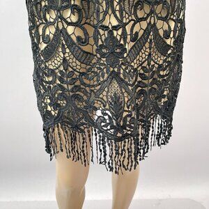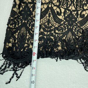 Saylor Black Guipure Lace Fringe Hem Spaghetti Strap Deep V-Neck Midi Dress S