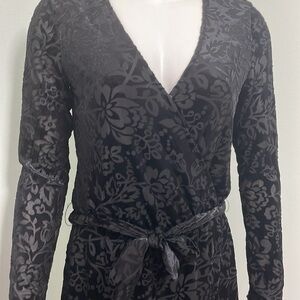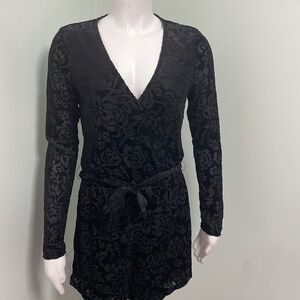 Saylor Burnout Velvet Romper Black Anthro V-Neck XS