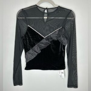 Size small. Missing size tag and imperfection where the size tag was, only noticeable from the inside of the garment.