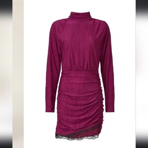 Step out in style with this elegant magenta ruched Saylor dress. Perfect for any occasion, this dress combines sophistication with a modern twist. The rich magenta color adds a vibrant touch to your wardrobe.