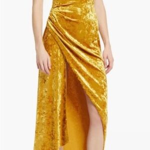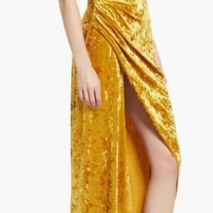 Elegantly draped along a slit hem, Saylor's Cydney midi dress is tailored in their sunny crushed velvet. Pull-over style.