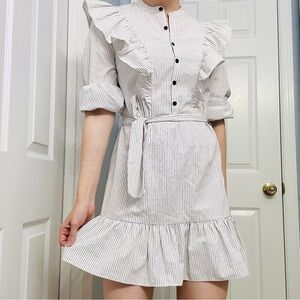 Saylor Dress Mini Ruffle Striped Dainty Coquette Twee Casual White Extra Small