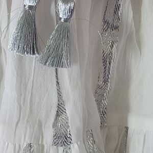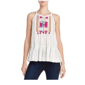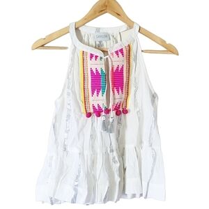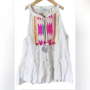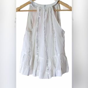 Saylor Women's Embellished Bib Metallic Peplum Top Stripes Gauze Size XS NWT