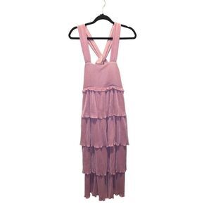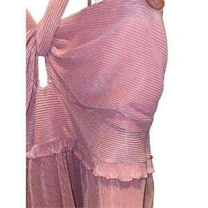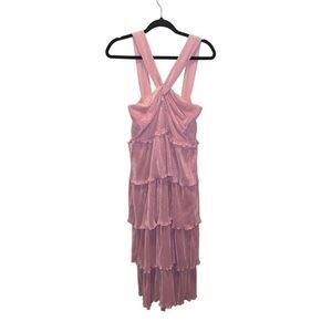 Made from shimmering bubblegum colored fabric; Esperanza features cross straps and perfectly tiered layers. Style this stunning piece with simple heels and a clutch bag.