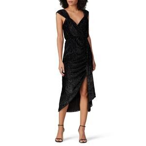 Saylor Farrah Velvet Burnout Tiger Stripe Faux Wrap Midi Cocktail Dress Small