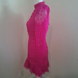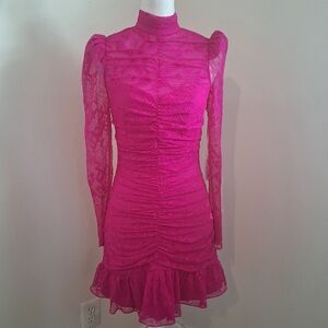Saylor Fuchsia Pink Marcey Lace Ruched Mini Dress Small NWT