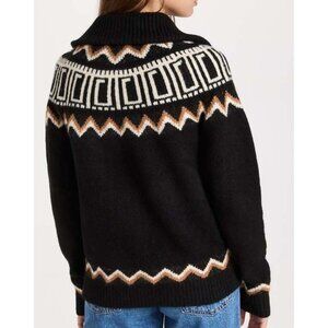 Saylor Gila Black Brown Ivory Fair Isle Mock Neck Zipper Cardigan Sweater Size S