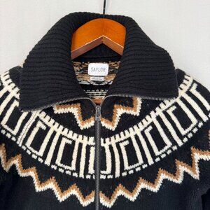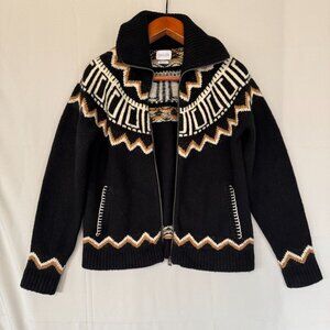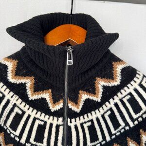 Saylor Gila Black Brown Ivory Fair Isle Mock Neck Zipper Cardigan Sweater Size Small