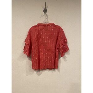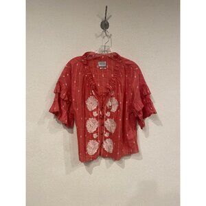 Saylor Kaye Blouse Womens Medium Pink Ruffle Sleeve Button Front Floral Boho