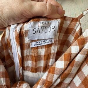 Saylor Laken Gingham Checkered Jumpsuit Apricot Tan