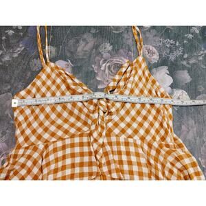 Saylor Laken Gingham Jumpsuit Sleeveless Ruffle Peplum Apricot Womens Size Small