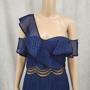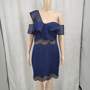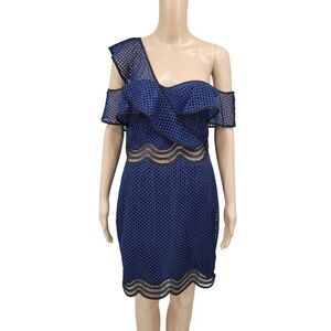 Saylor Luca Dress Off The Drop Shoulder Navy Black Lace Mesh Mini Dress