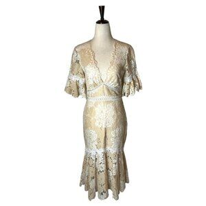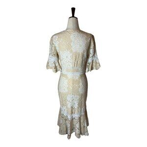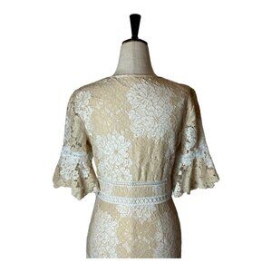 Saylor Maggie Dress Womens Small Ivory Nude Floral Lace Bell Sleeve Ruffle Hem