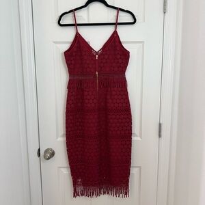 Saylor Margot Lipstick Red Lace Fringe Midi Dress Women’s Medium Cocktail Party