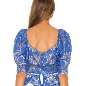 Saylor, Marnie Blouse, Embroidered Top, Lace Blouse, Ruffled Top, Cornflower Blue, Blue Blouse, Floral Embroidery, Bohemian, Boho, Boho Chic, Romantic, Feminine, Vintage inspired, Cottagecore, Prairie, Peasant Blouse, Statement Top, Lightweight, Designer, Anthropologie, Free People, Revolve, For Love & Lemons, Ulla Johnson, Sezane, Zimmermann, Casual, Daytime, Date night, Spring, Summer