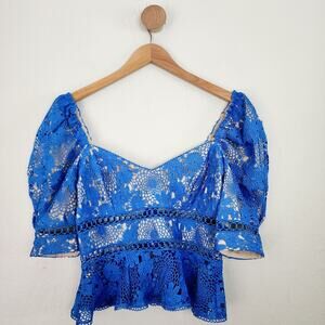 Saylor Marnie Blue Embroidered Lace Ruffled Blouse Cornflower