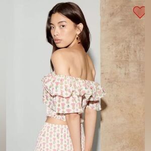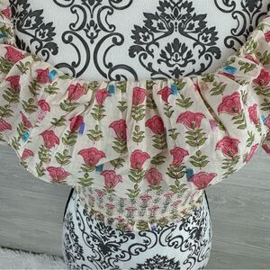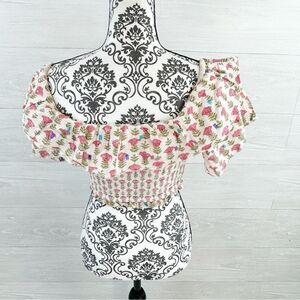 Saylor Milley Floral Metallic Smocked Off Shoulder Cropped Top XS