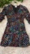 Beautiful black and metallic material with rainbow flowers/florals and a cinched ruched gathering at the bottom!