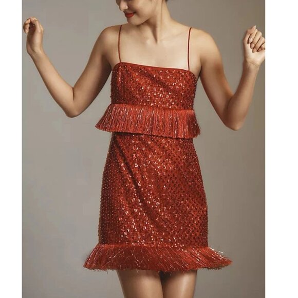 Saylor NYC Caitriona Sequin Fringe Red Mini Dress S