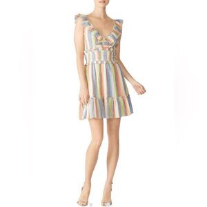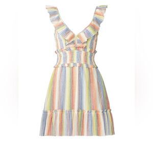 Saylor Rainbow Stripe Alma Ruffle Trim Smocked Mini Dress Sz XL in EUC with no visible flaws