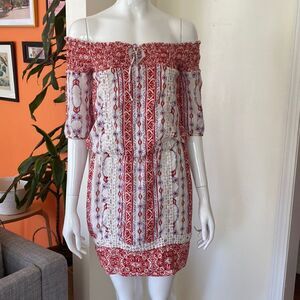 Saylor Red and White Blouson Blossom Mini Dress Size Small