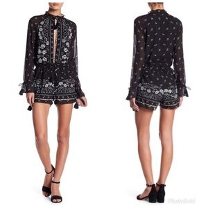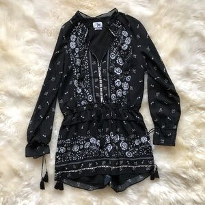 Saylor Reilly Print Studded Long Sleeve Romper L