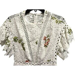 Saylor Robbie White Lace & Embroidered Floral Mini Dress Sz