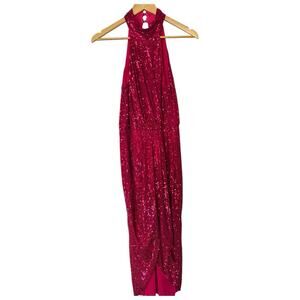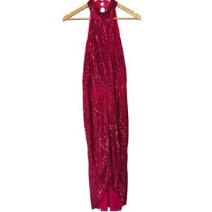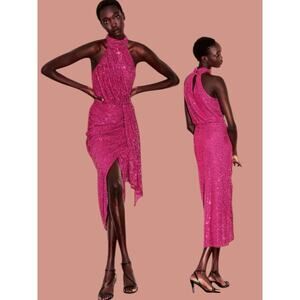 Saylor Shana Cocktail Sequin Dress Pink Halter Sheath Midi Hi Lo Medium M