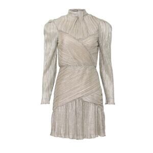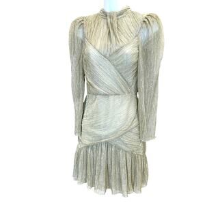 Saylor Silver Ruched Mini Dress XS Sheath Designer Puff Sleeves Cocktail $275