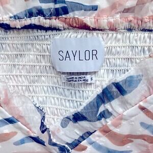 Saylor Teryn Smocked Printed Boho Puff Sleeve V Neck Crop Top Size S