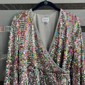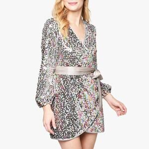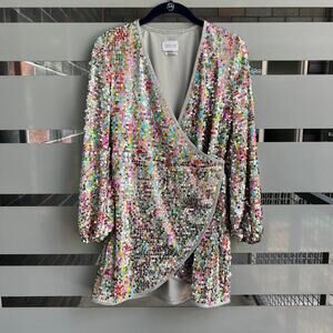 Saylor Val Multicolor Sequin Wrap Mini Dress Size XS
