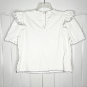 Saylor White Denim Ruffle Front Top Harriette Size Large Nautical Girly