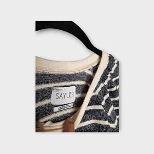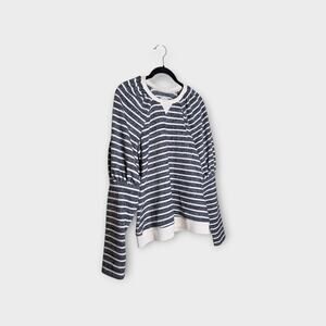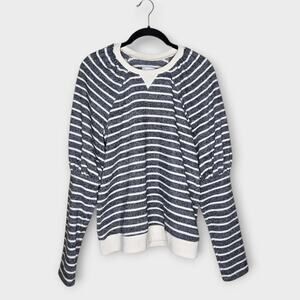 Saylor Women's Auggie Gray Stripe Puff Sleeve Pullover Top L Coastal Femme