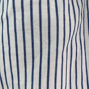 Cotton Color: Blue/white stripe One sleeve silhouette Long sleeve Elastic wrist cuff Machine wash