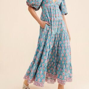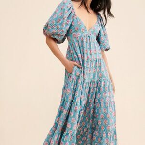 bohemian, summer dress, puff sleeve, cotton midi, floral print, tie back, beach vacation, cottagecore, romantic style, feminine silhouette, resort wear, effortless chic, weekend getaway, Saylor dress, block print dress