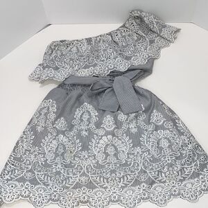 Saylor Grey & White Pinstripe One Shoulder Mini Dress Size Small
