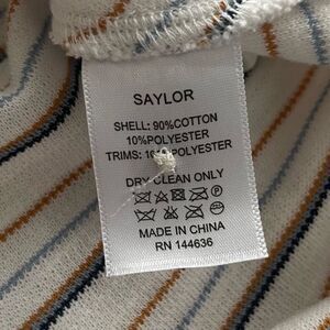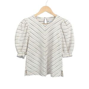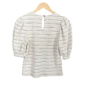 Excellent condition adorable knit pop-over top with smocked sleeve cuffs and side seam vents. Looks great with a french tuck. Sedona Stripe Knit. Button closure at back neck with keyhole opening. Approximately 21” long and 16” armpit to armpit.