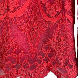 Saylor Norma Red Lace Top Long Sleeve High Neck Sheer