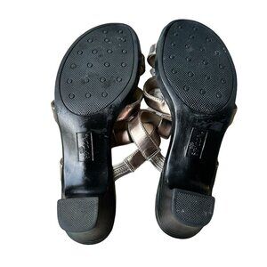 Sbicca California Goldie Metallic Strappy Sandals Floral Design Women's Size 7W