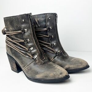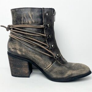 Rustic charm with lace-up detail. Perfect for casual outings. Comfortable block heel.