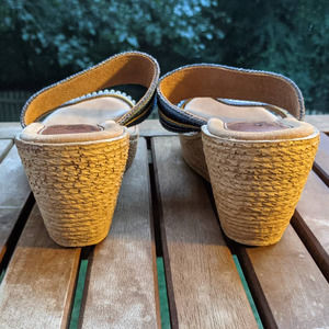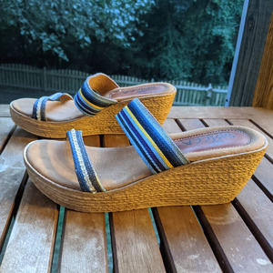 Sbicca Espadrilles wedge sandals Canyon Blue Striped Slide rhinestone * size 8 *