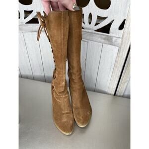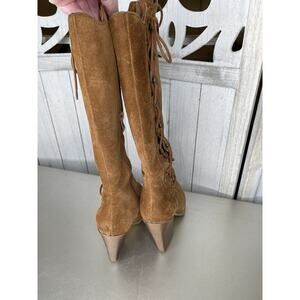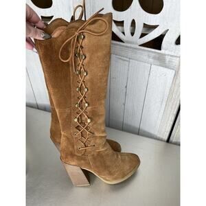 Sbicca Lace Up Scalloped Edge Granny Suede Leather Boots Size 6.5