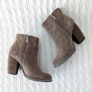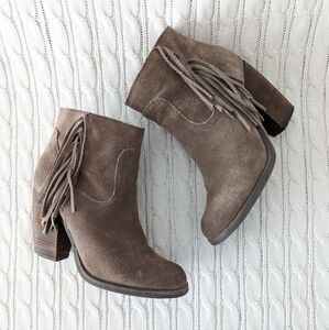 Sbicca Marimba Suede Leather Fringe Ankle Boots 8 Taupe Gray Brown Boot