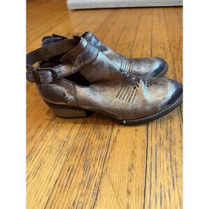 Sbicca Shoes Womens Size 6.5 Bronze Cutout Ankle Boots Western Buckle Leather