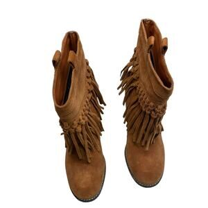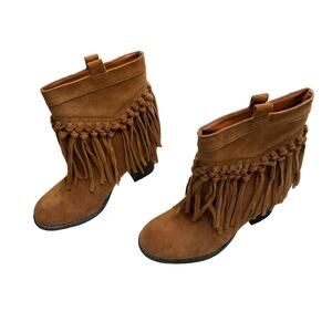 Sbicca Sound Suede Western Fringe Booties Tan Brown Size 6